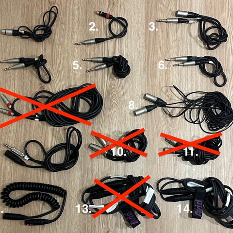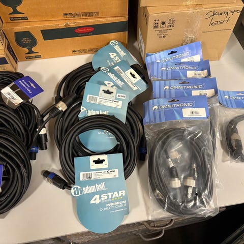 Kuvanmukaisia kaapeleita. Äänikaapeleita, ethernet kaapeli ym.