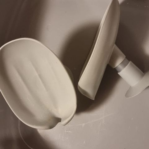 Myydään kaksi uutta keraamista saippua-annostelijaa. Korkeus 18 cm, leveys 7 cm. Alaosa keramiikkaa, yläosa muovia. Jääneet kaappiin seisomaan, eivät ole käytössä olleet.