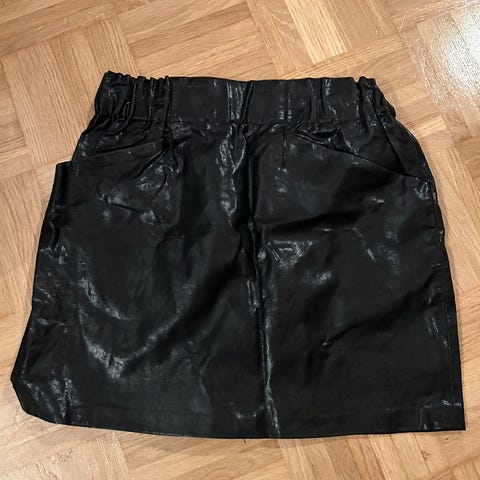 Uusi musta nahkahame,tasut sivussa,kokopituus noin 75.sm