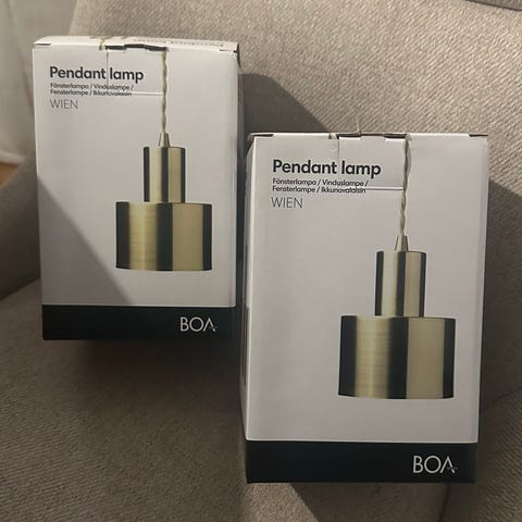 2 kpl valkoisia lamppuja, 2 kpl puunvärisiä, 10€ kpl.