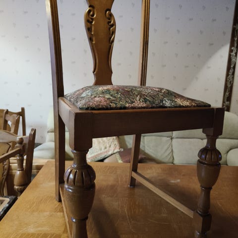 Pöytä ja 6kpl tuolia. 140x100 korkeus 73cm. Käytön kulumaa joka on huomioitu hinnassa. Voidaan myydä myös erikseen. Tuolit 50e kpl.