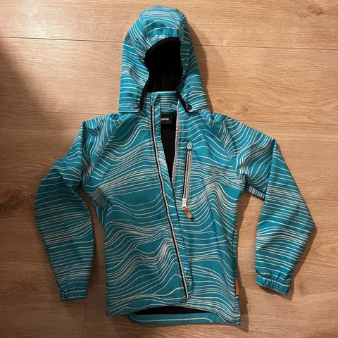 134 cm uutena ostettu yhdellä lapsella vähän aikaa käytössä ollut hyvässä kunnossa kaunis punainen kaupunki kuvioinen softshell takki. Irrotettava huppu.