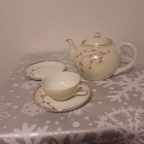 Cha Cult Fine Porcelain muki kannella ja siivilällä alkuperäispakkauksessa. Nouto Katajanokalta.
