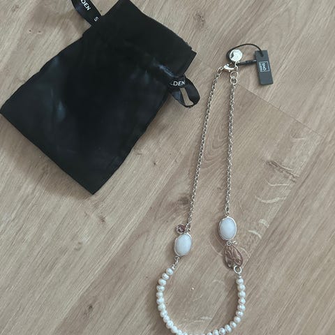 Hopean värinen kaulakoru. Kunto moitteeton.