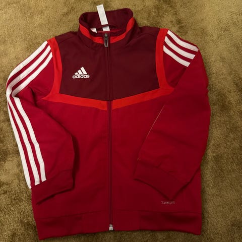 Adidaksen uudenveroinen vähän käytetty tummanpunainen verkkaripaita tai urheilupaita koossa 116 cm.