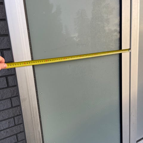Lasi ikkunalla oleva leikkimökki ovi , saranat ja karmit , itse oven mitat 60 x 130 cm