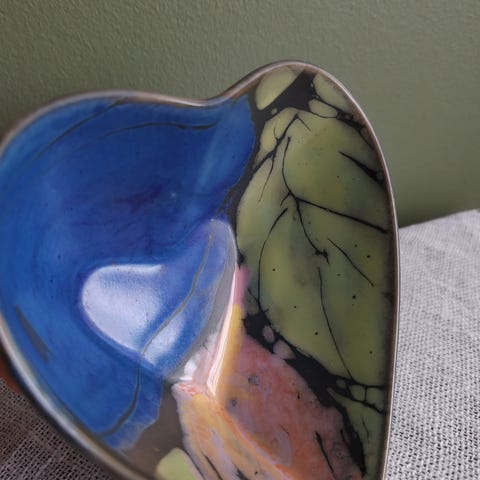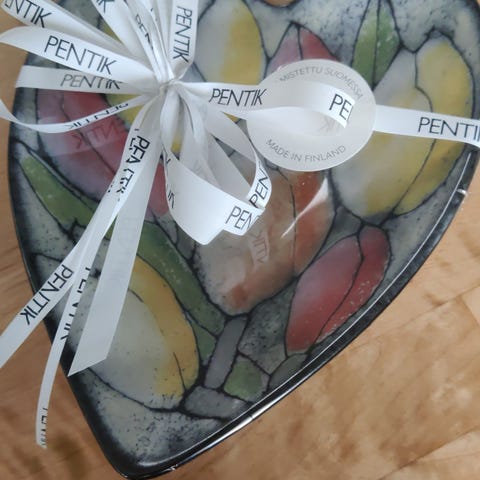 Pentik sydänmalja, koko 18 x 22cm. Käytetty satunnaisesti. Kunto uutta vastaava!
