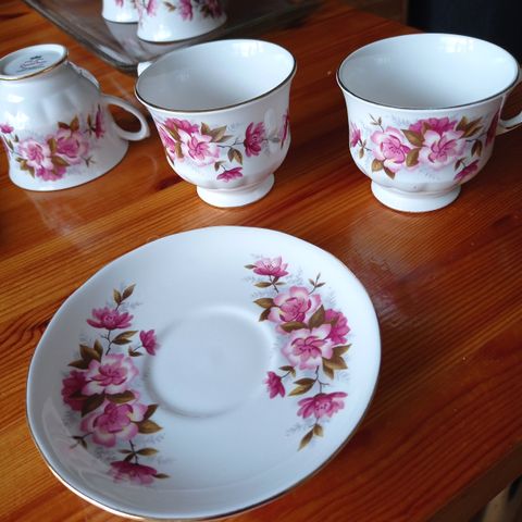 Kaunis lautanen,kultaisilla reunakoristeilla. Pohjassa lukee Queen Anne.