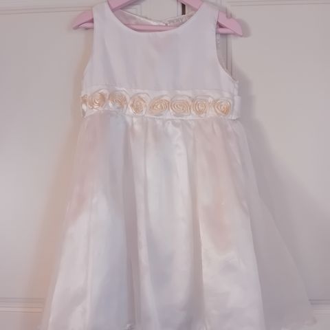 Kauniisti kirjailtu mekko. Kokolappua ei ole mutta samaa kokoa kuin toinen mekko 98. Vetoketju takana. Rispaantumia löytyy jokunen, kuvissa. Hyvä prinsessoimiseen silti vielä.