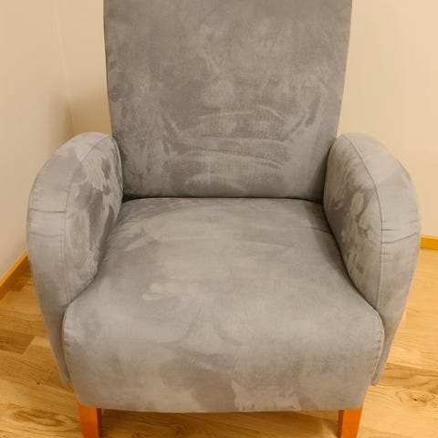 Myydään kuvan mukainen harmaa nojatuoli , minimaaliset läikkäät, hinta 65
