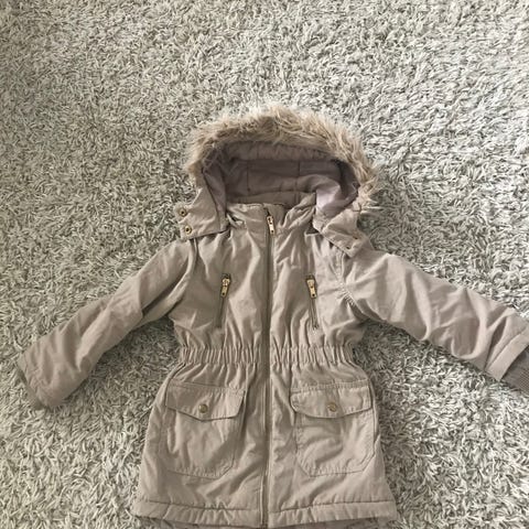 Siistikuntoinen vuorellinen H&M keinonahkatakki koossa 104. Vastaa mielestäni hyvin kokoaan.