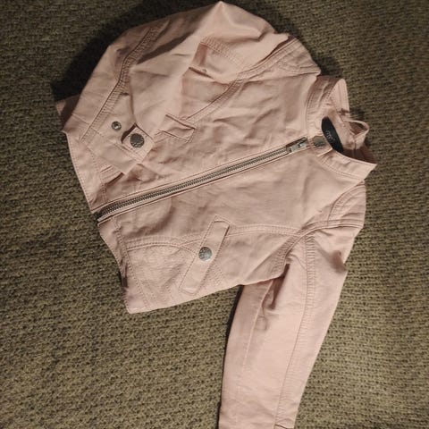 Siistikuntoinen Lindex keinonahkatakki. Kokolapussa 98, mutta mielestäni hieman nafti. Käyttäisin koossa 92/98.