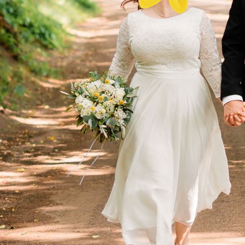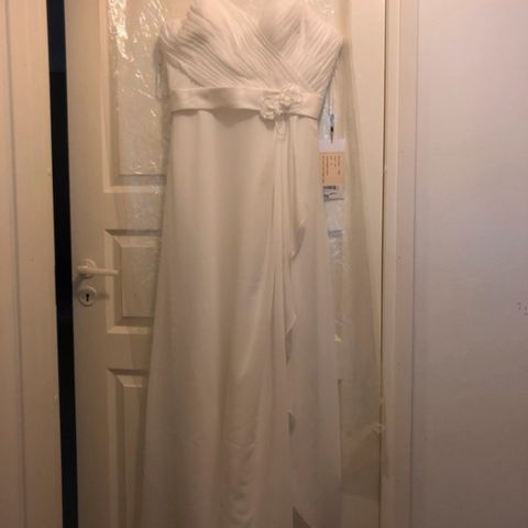 Itselläni häämekkona ollut, Zalandosta hankittu mekko. Luonnonvalkoinen/norsunluun värinen, nude vuori. Hääpäivänä käytetty, ei pesetetty mutta tahraton ja hajuton ja kaikin puolin kunnossa. Ollut pukupussissa kaapissa ja nyt ajattelin luopua, kuvat kuitenkin muistona. Ryhdikäs, painava mekko.