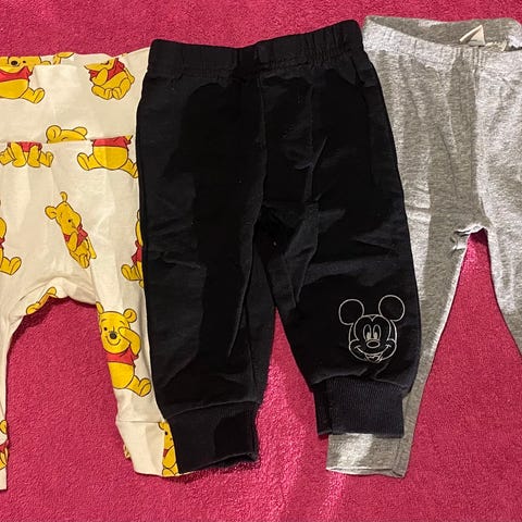 Sisältää Nalle puh housut ja T-paidan (h&m), Aristokatit Marie housut ja paidan sekä Bambi bodyn.