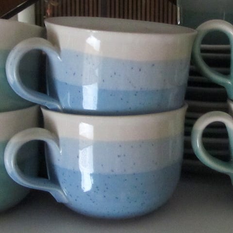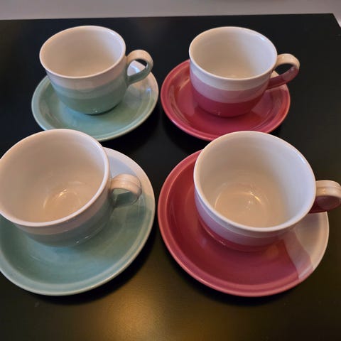 Kuppi halkasija 9 cm, korkeus 7 cm. Lautanen halkasija 15 cm.