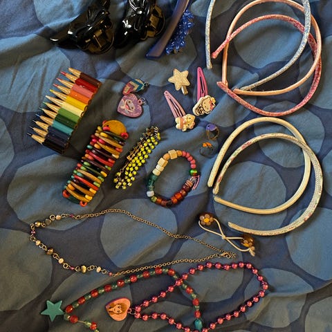 Tyttöjen roolimekot ja kruunut tyttöjen leikkeihin,, ei kokomerkintää, noin 1-3v.