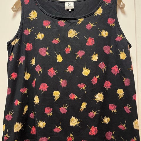 Hyväkuntoinen Nanson naisten ruusu-printtinen hihaton toppi. Erittäin mukava materiaali.