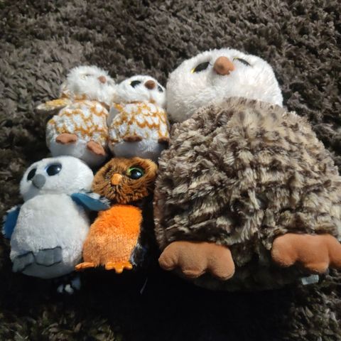 Kaksi TY -sarjan pöllöpehmoa Twiggy ja Enchanted. Puhtaat ja siistit. Meillä ei asu koiraa tai kissaa.