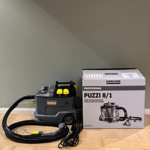 Vuokrataan ammattitason Kärcher Puzzi 8/1 Adv. Se on entistä tehokkaampi, kevyempi ja ergonomisempi ja ylivoimainen ratkaisu tekstiilipintojen puhdistukseen.