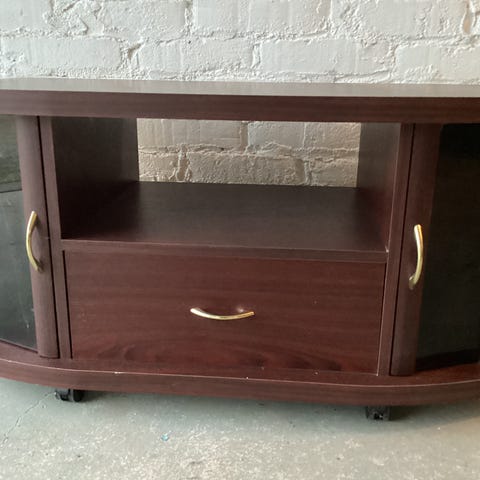Valkoinen tv taso pyörillä oleva ehjä (lastulevyä)