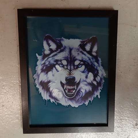 Kuvan susitaulu myydään tarpeettomana 5e. Koko n.40x50cm. Nouto tai toridiili.