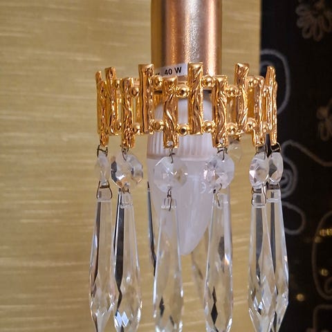 Maitolasinen ikkunalamppu, korkeus noin 50 cm, halkaisija noin 14 cm. Johto noin 90 cm. Nouto Sinetästä tai kulkeutuu sovittaessa omien menojen mukaan Rovaniemen alueella.