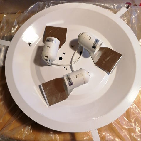 Neljällä lampulla toimiva, pinta-asennettava valaisin.