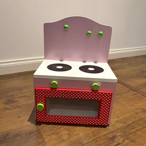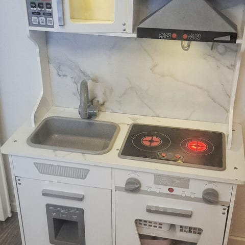 Myytävänä vähälle käytölle jäänyt lasten muovinen keittiö.