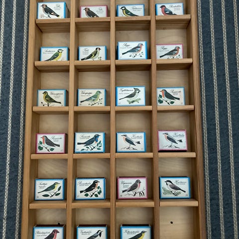 Nimi: 13 kappaletta lintuaiheisia tulitikkuetikettejä