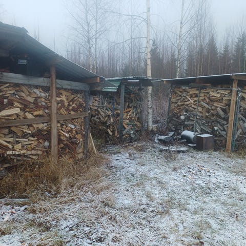 Polttopuuta/klapia kuution säkeissä Pihtiputaan Alvajärvellä.