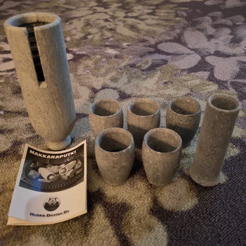 Hukka makkaraputki ja oluttynnyri / juomanjäähdytin vuolukiveä mm joululahjaksi