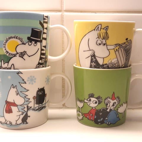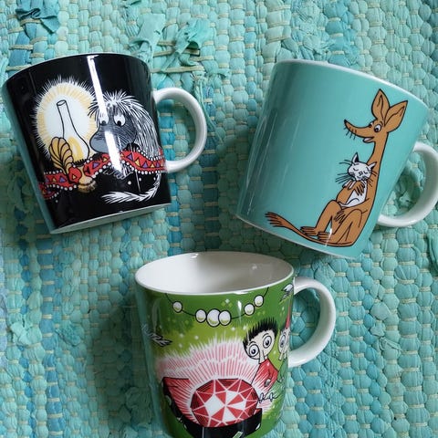 Arabian käyttämättömät, joskin tarrattomat, muumimukit Nipsu (tuotannossa 2008=>) ja Tuutikki (tuotannossa 2006-2015).