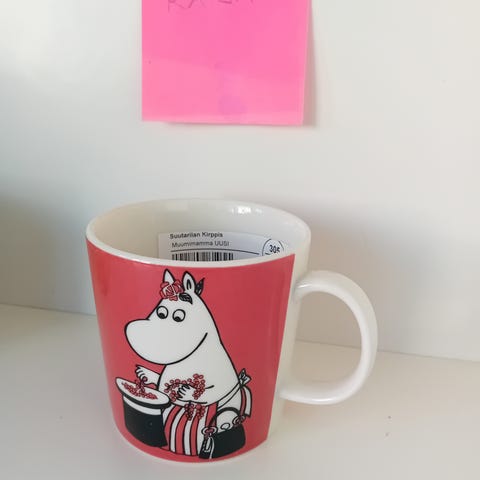 Käyttämätön, joskin tarraton, muumimuki Muumimamma (tuotannossa (2014 - 2020).