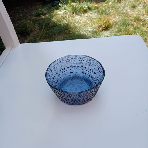 Harmaa, siniseen taittava Iittalan Kastehelmi kulho, noin 11cm halkaisijaltaan.