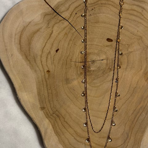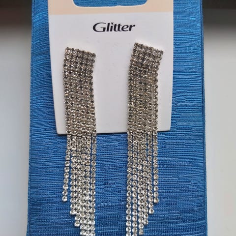 Siro Glitter kaulakoru, joka on uusi ja käyttämätön. Korun pituus on 38cm + 8cm jatkomahdollisuus. Keskiosan leveys on 12cm ja korkeus 2cm. Hankintahinta, 16,90€ näkyy taustalevyssä.