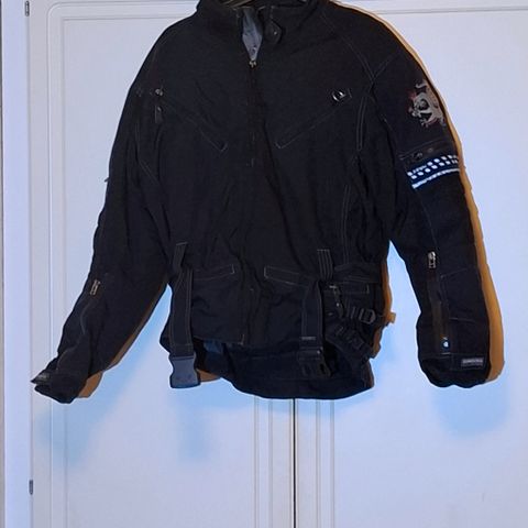 Rukan coretex ajotakki koko 38, hieman vanhempaa mallistoa joten reilu koko. Tikkivuori irrotettavissa. Suojat kyynärpäissä ja olkapäissä. Hyvät kiristykset vyötäröllä. Taskut edessä tarrat ja vetoketjut. Hieman pidempi malli takaa. Hyvät heijastimet koko takissa. Ominaisuudet takissa tallella, hyvä ja siisti.