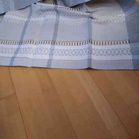 Voi pitää pöytäliinana, tästä voi ommella myös laudeliinoja taikka verhokappojakin.