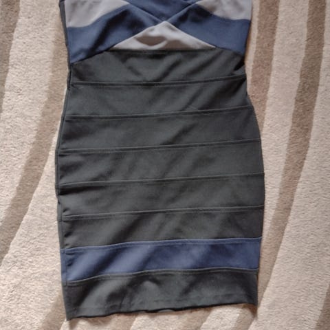 Kuvien mukainen siisti hyvä kevyesti laskeutuvalla muhkealla helmalla varustettu mekko