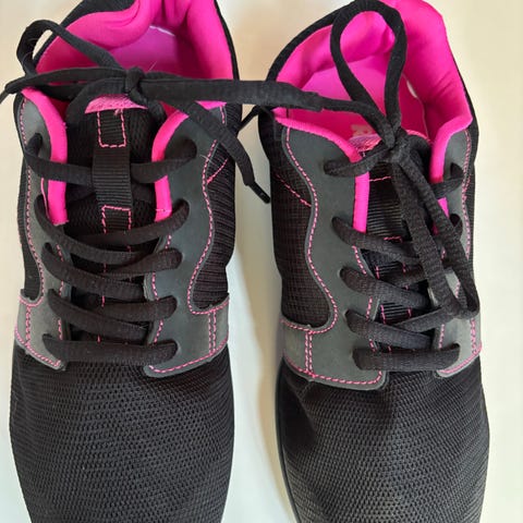 Kokeiltu sisällä muttei edes tanssittu kun koko osoittautunut liian suureksi. Ulkopohja nahkaa.