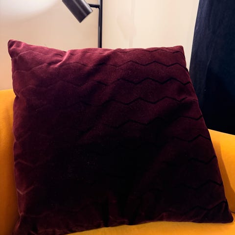 Myydään uusi iso sisustustyyny. Alhaalla vetoketju. Sisus vaahtomuovirouhetta, millä muotoutuva ominaisuus.