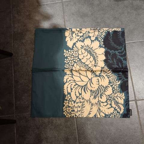 Marimekon Ananas tyynyliina, 100 % puuvillaa. Pohjaväri on beige/khaki. Hiven kellastumaa, muuten hyväkuntoinen.