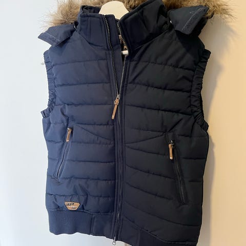 Tummanlila hyväkuntoinen untuvaliivi. Merkki Esprit. Kainalo-kainalo 52cm. Nouto Vihti tai lähetys.