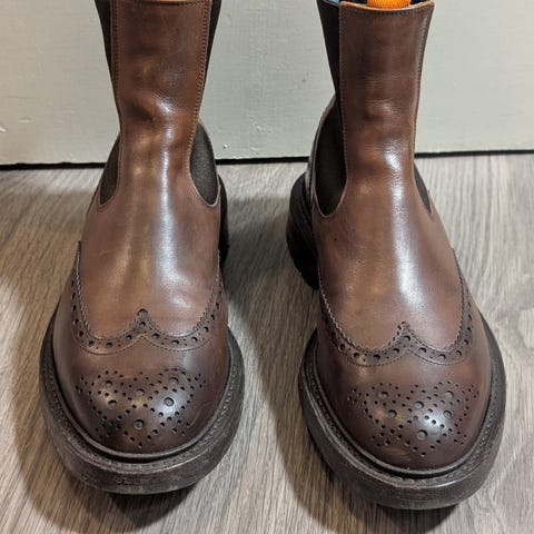 Hyväkuntoiset Tricker's Bourtonit. Pidetty aina pohjallista sillä on vähän isot itselle. Leveähkö lesti. Linkistä lisätietoa, tosin ihan samaa mallia ei myynnissä tällä hetkellä. Pesty ja huollettu Saphirin aineilla ja pidetty aina lepolesteissä.