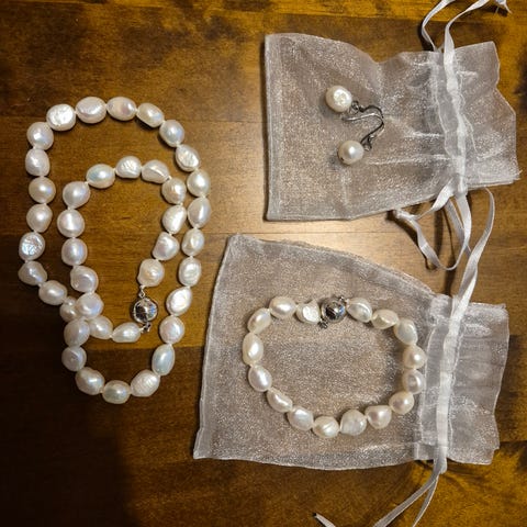 Helmikorusetti, kaula- ja rannekoru, yht. 25 e