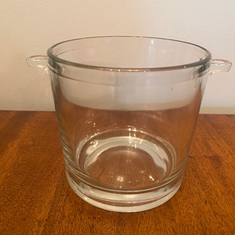 Sinisestä lasista tehty jääpala-astia ja pihdit. Korkeus 13cm.