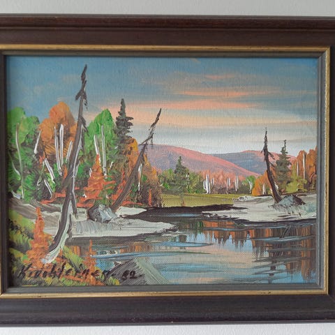 Vanha maisemataulu koko 63x47cm, komeat vanhat kehykset. Taiteilija V.K.-39. Maalattu Turun vehnämylly-kankaaseen. Hyväkuntoinen. Nouto Lukonmäki ja käteismaksu noudettaessa.