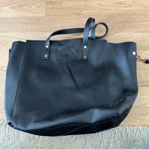 Naisten Ari-laukku, midi kokoa, leveys 33 cm ja korkeus 28 cm. Olkahihnan pituus on säädettävissä. Tuotteen kulmissa on hieman kulumaa. Tuote on muilta osin hyvässä kunnossa. Tilava laukku.