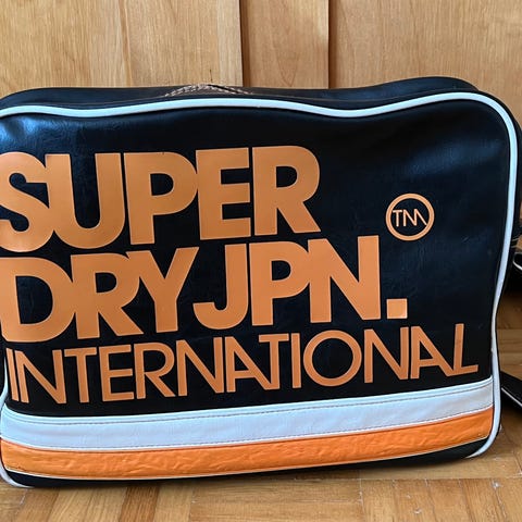 Musta olkalaukku tarpeettomana. Koko noin 40x35. Sisällä kaksi taskua ja yksi vetoketjutasku.