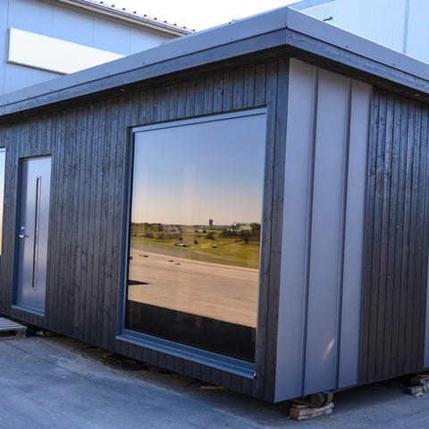 Autotien vieressä, nosturi pääsee aivan viereen kokonaisena siirrettäessä. Helppo myös purkaa tarvittaessa siirtoa varten.