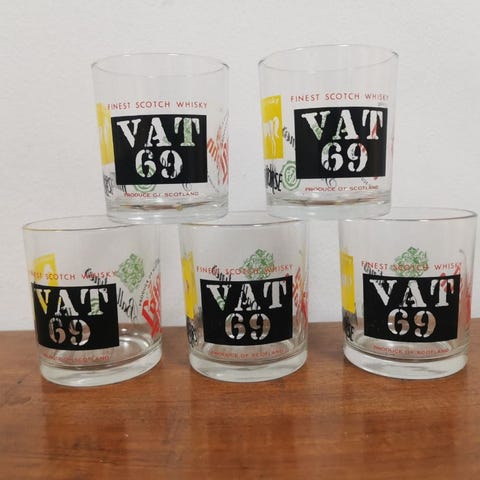 6 vintage-teksturoitua viskilasia erinomaisessa kunnossa